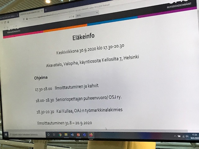 Luennoitsijat Kai Kullaa (OAJ:n työmarkkinalakimies) ja Pentti Länne (Helsingin seudun ammatilliset senioriopettajat HASO ry:n pj.) valottivat monipuolisesti eläkkeelle siirtymistä ja siihen valmistautumiseen liittyviä tarpeellisia toimenpiteitä. Kynät sauhuten jäsenet kirjasivat ylös heille tärkeät vinkit talteen, jotta eläkkeelle siirtyminen onnistuisi mahdollisimman hyvin!