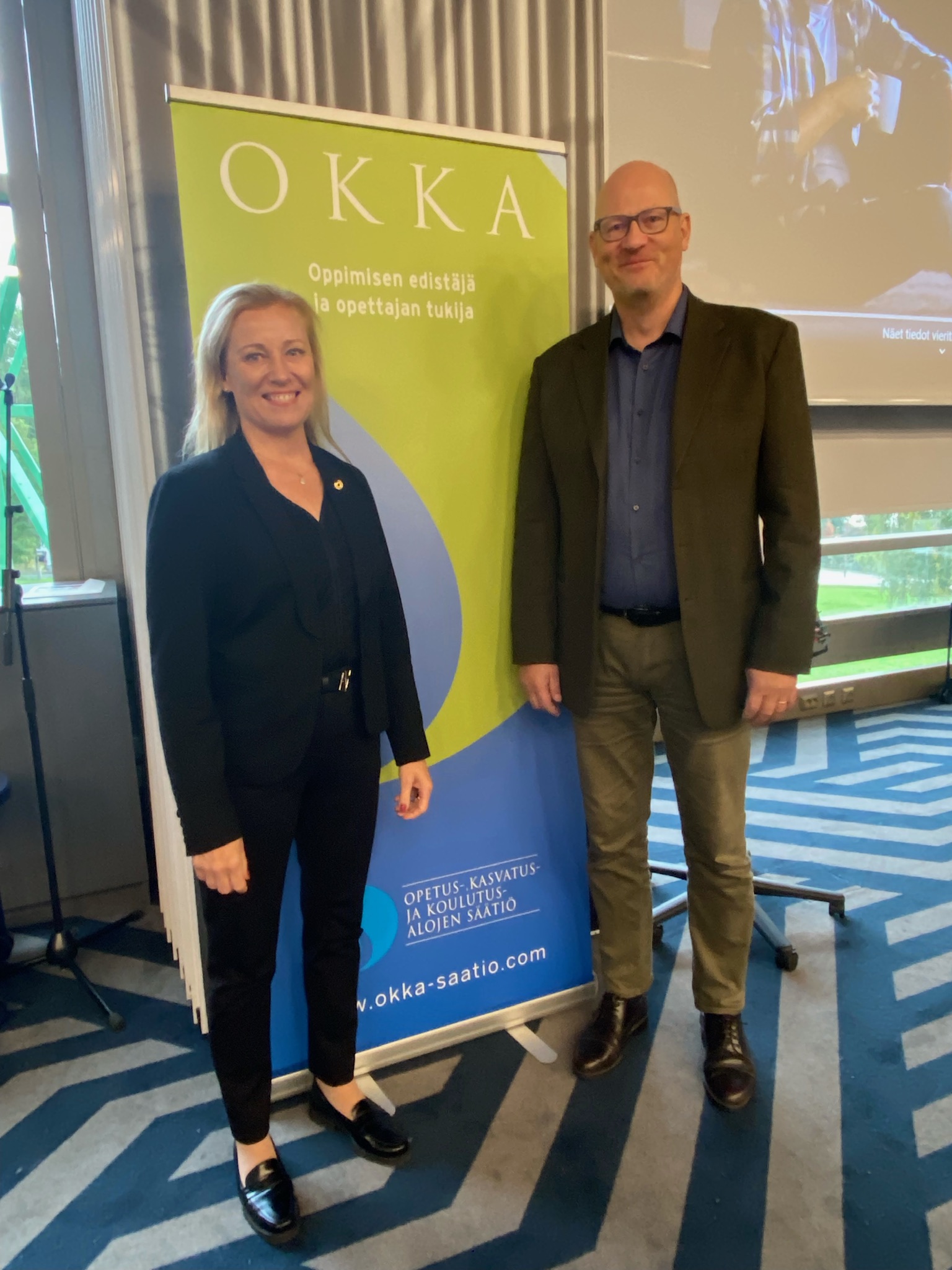 Tilaisuudessa OKKA-säätiöstä säätiönjohtaja Tuulikki Similä ja suunnittelupäällikkö Erkka Laininen. 17.9. Päivän puheenjohtajana toimi OAJ: n Ammatilliset opettaja OAO: n puheenjohtaja Lauri Hietalahti.