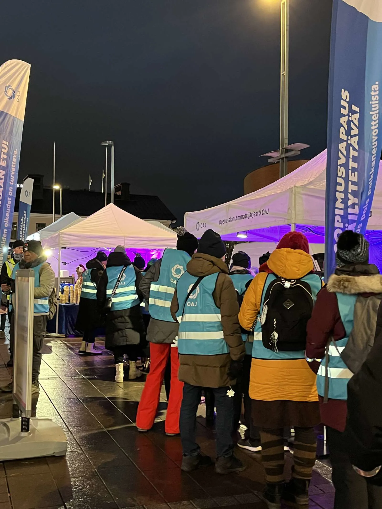 Kulkue eteni Mannerheimintie- Aleksanterinkatu- Valtioneuvoston linna- Unioninkatu- Pohjoisesplanadi-Mannerheimintie. Narinkkatorilla OAJ: n puheenjohtaja Katarina Murto pitää erityisen tärkeänä sitä, että opettajien palkkatason neuvottelut ovat sopimusvapaita, eikä työntekijöiden oikeuksia heikennetä.