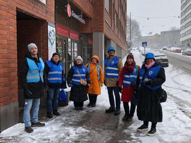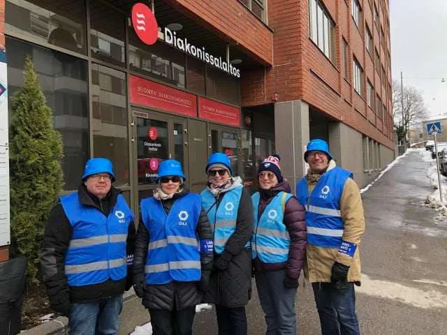 OAJ Pääkaupunkiseudun alueyhdistyksen jäsenyhdistyksen Suomen Diakoniopiston opettajia lakkovahteina Helsingissä